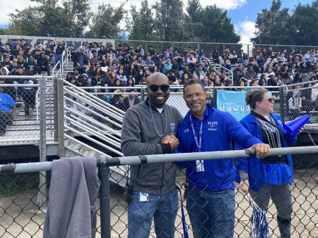 Class of 2026 seniors face the Junior class in an intense round of tug-of-war.BHS Principal Mr. Adelekan and Assistant Principal Mr. Edwards pose for TBB.K-Pop Club putting on a spectacular debut performance.Benny the Bengal makes an appearance on the field.JV and Varsity Cheer showing off their “Blake Pride.”Varsity FIeld Hockey in all black representing team spirit.Blake Girls Volleyball poses for TBB.Blake runners pose for a cross country photo.Girls Soccer in all blue representing their squad!!The cheer team reached new heights during an awesome performance.Crowned Sophomore HOCO Queen: Zion Hutchinson poses for The Blake Beat.Crowned Senior Hoco King: Kidus Tesfaye, greeting the crowd.Crowned Junor HOCO Queen: Gabriella Blount poses for The Blake Beat.Blake Football Senior, Marley Hutchinson shows off his school spirit!Class of 2026 student section roaring with bengal pride! Egg-citing field competitions deciding which class is ON TOP!!